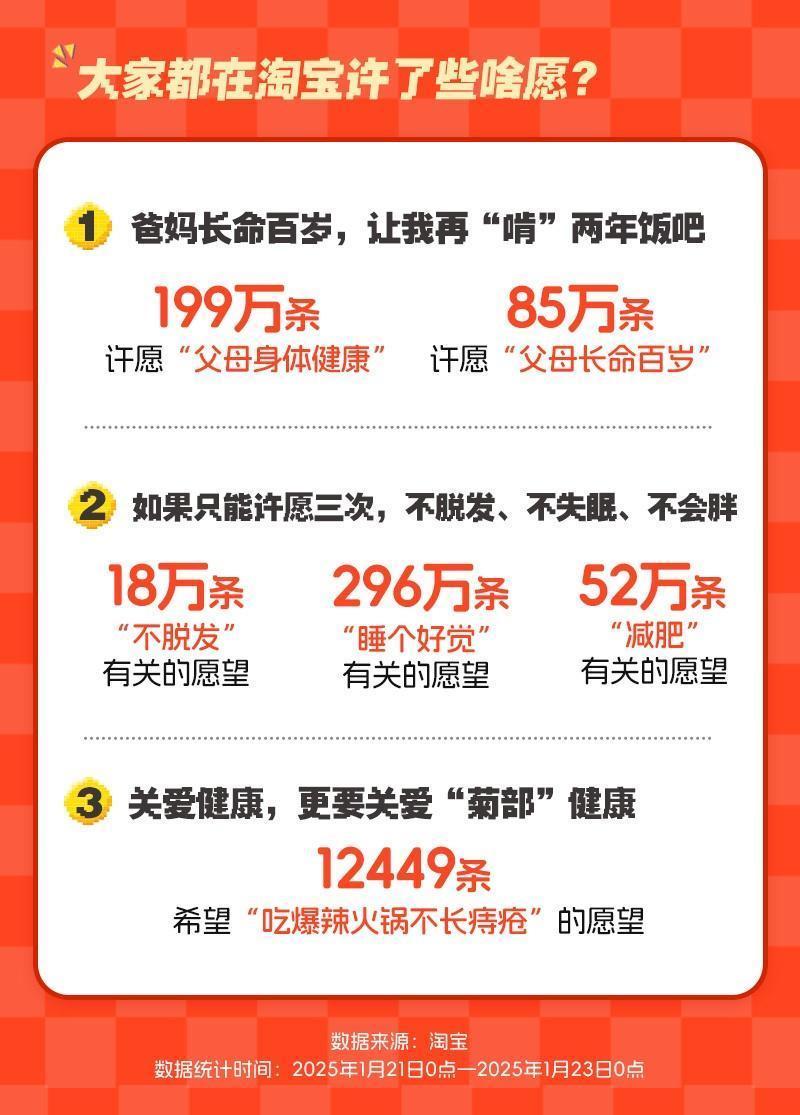 超6000万人上淘宝许愿,“活人感”愿望刷屏,“健康”超越“暴富”成为新年首要愿望